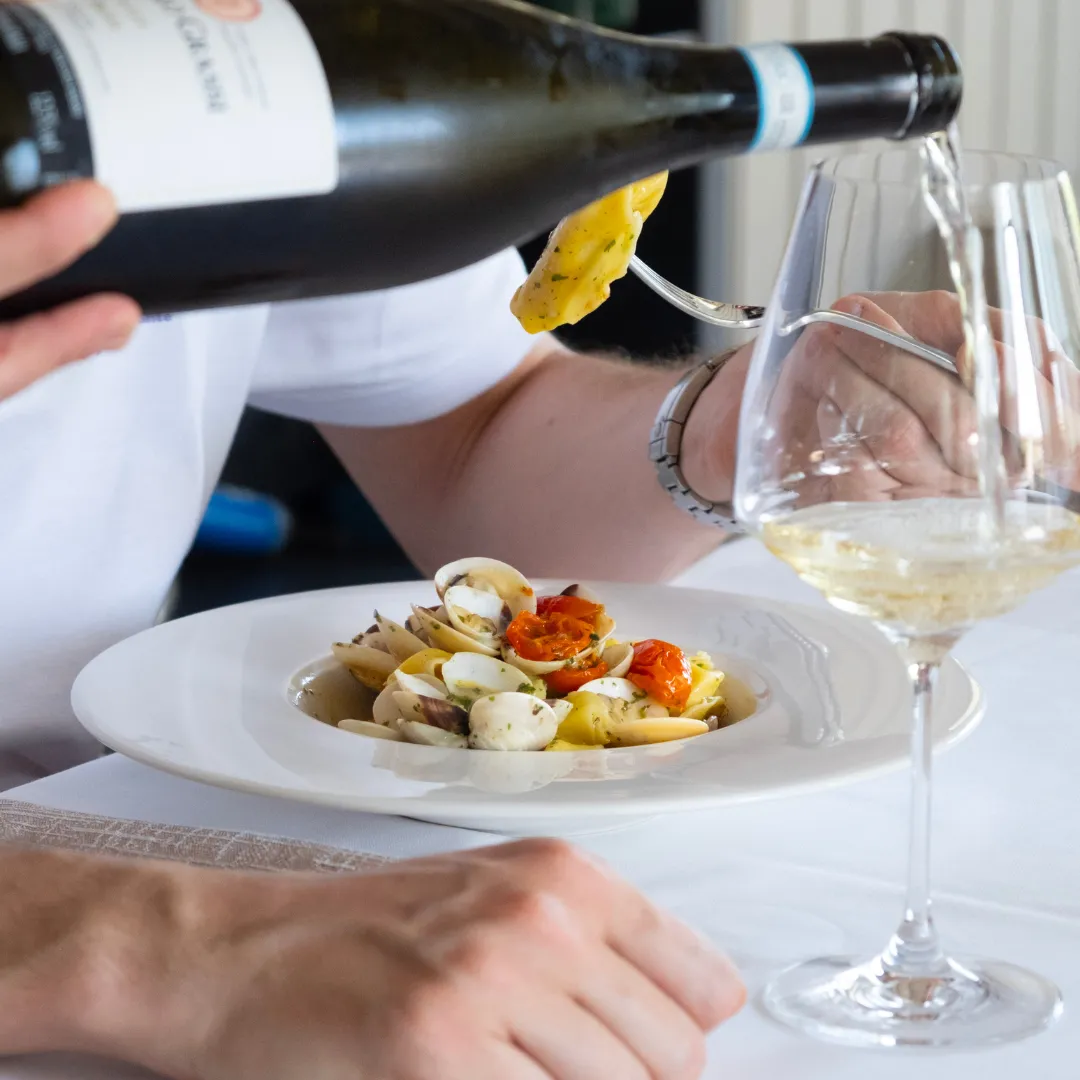 Oltre alla qualitĂ , Il Glicine gode di una selezione molto accurata di bollicine e rossi del territorio per accontentare anche i sommelier piĂą esigenti.